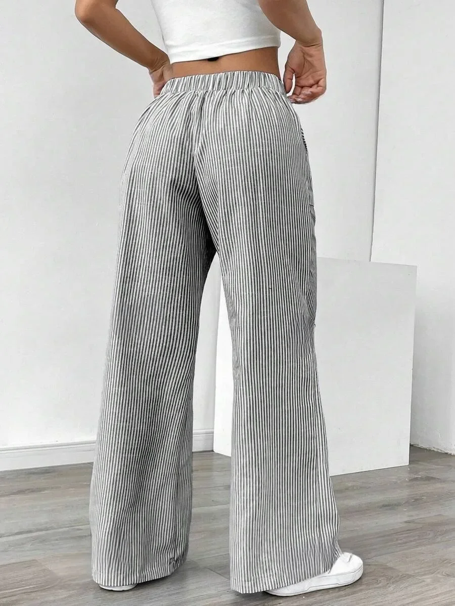 Women’s High-Waisted Loose Wide-Leg Striped Trousers