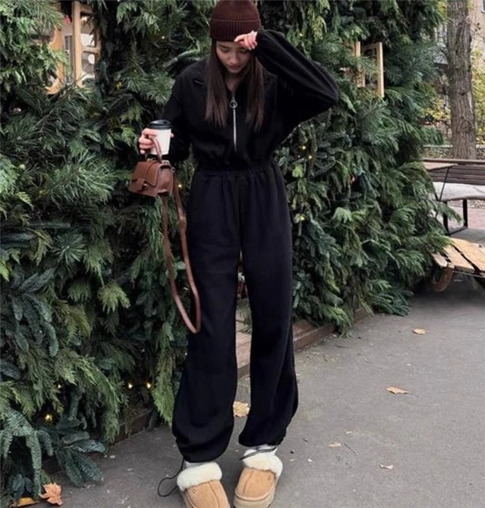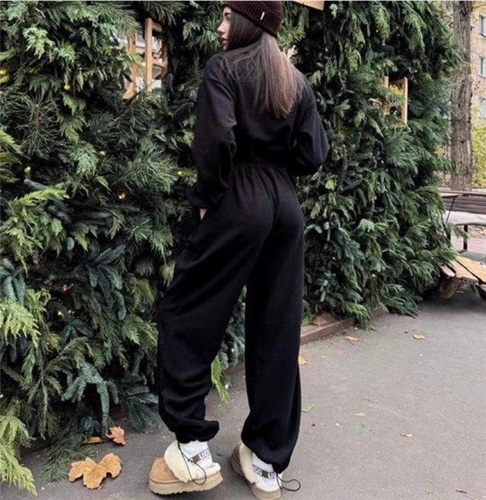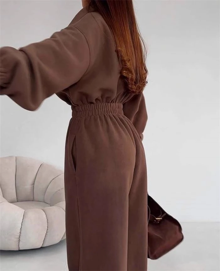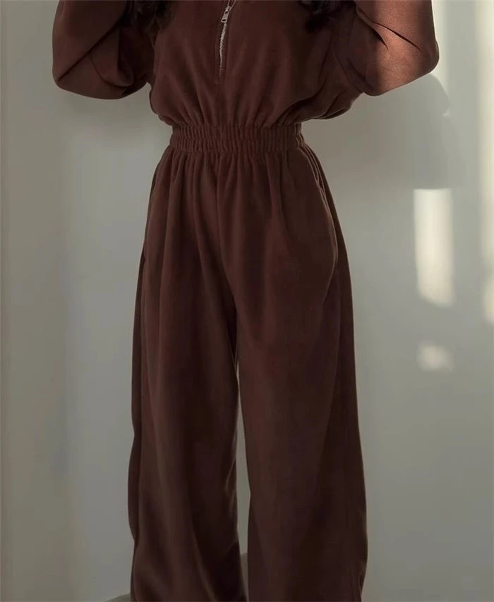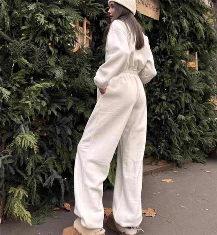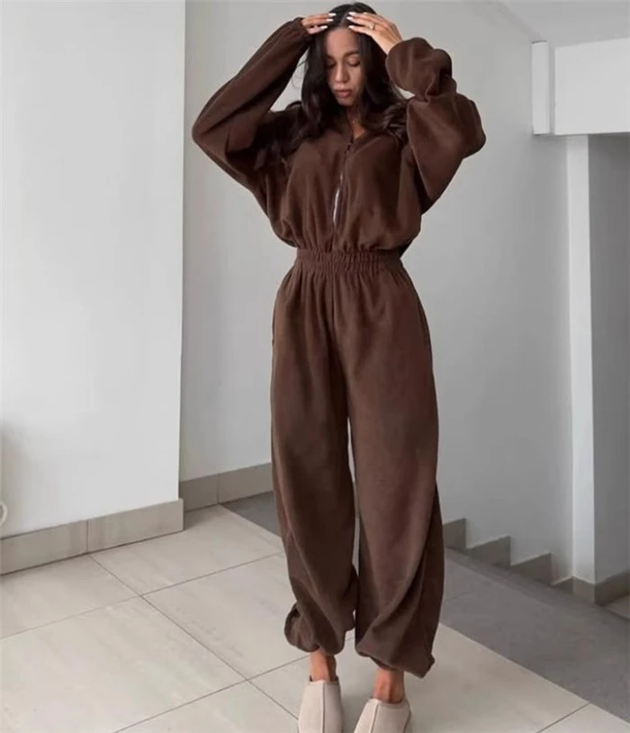Discover the ease of this modern one-piece outfit: a hooded zip-front jumpsuit with long pants, tailored for women who demand both comfort and style. Designed with casual elegance, this set transitions effortlessly from lounging at home to casual outings. Lightweight yet structured, it gives you the confidence of a coordinated outfit—without the hassle of separate pieces. Embrace the new spring 2025 trend of elevated loungewear that still feels like you.
