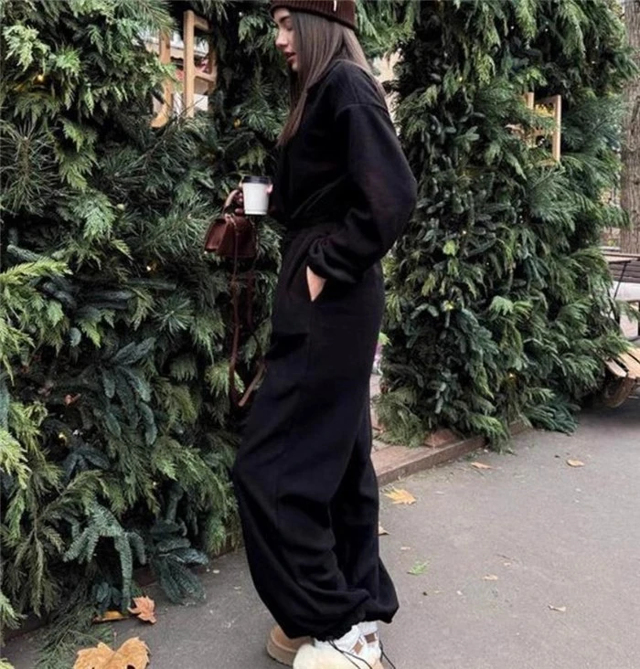 Comfort without compromising style: The relaxed fit and hooded design deliver lounging ease, while the long-pant silhouette elevates the look for casual outings.