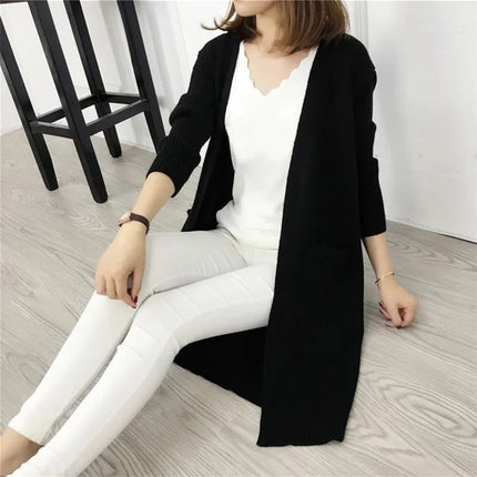 Women’s Long Winter Zipper Jacket – Elegant Street-Style Coat with Pockets