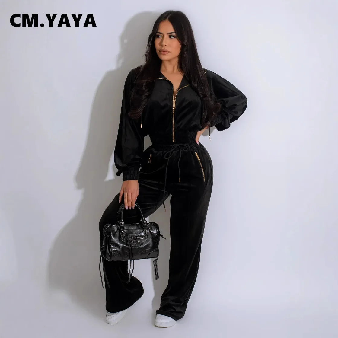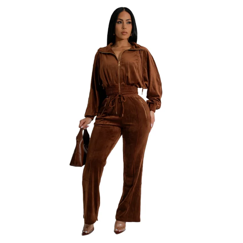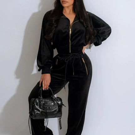 Step into effortless style and unbeatable comfort with this luxurious two-piece women’s set, designed to elevate your fall wardrobe. Crafted from plush velour and finished with a sleek full-zip sweatshirt and matching joggers, this outfit gives you the perfect blend of lounge and streetwear. Whether you’re heading out for errands, relaxing at home or meeting friends, enjoy a modern silhouette that doesn’t compromise on softness or style. Tailored for 2024’s active-leisure trend, this set ensures you look pulled together while feeling relaxed.