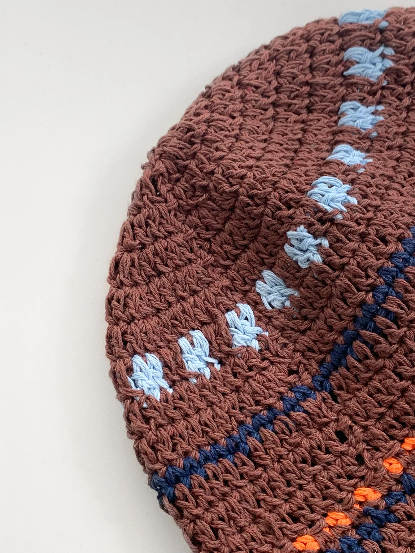 Design: Contrast colour stripes with a classic fisherman bucket shape