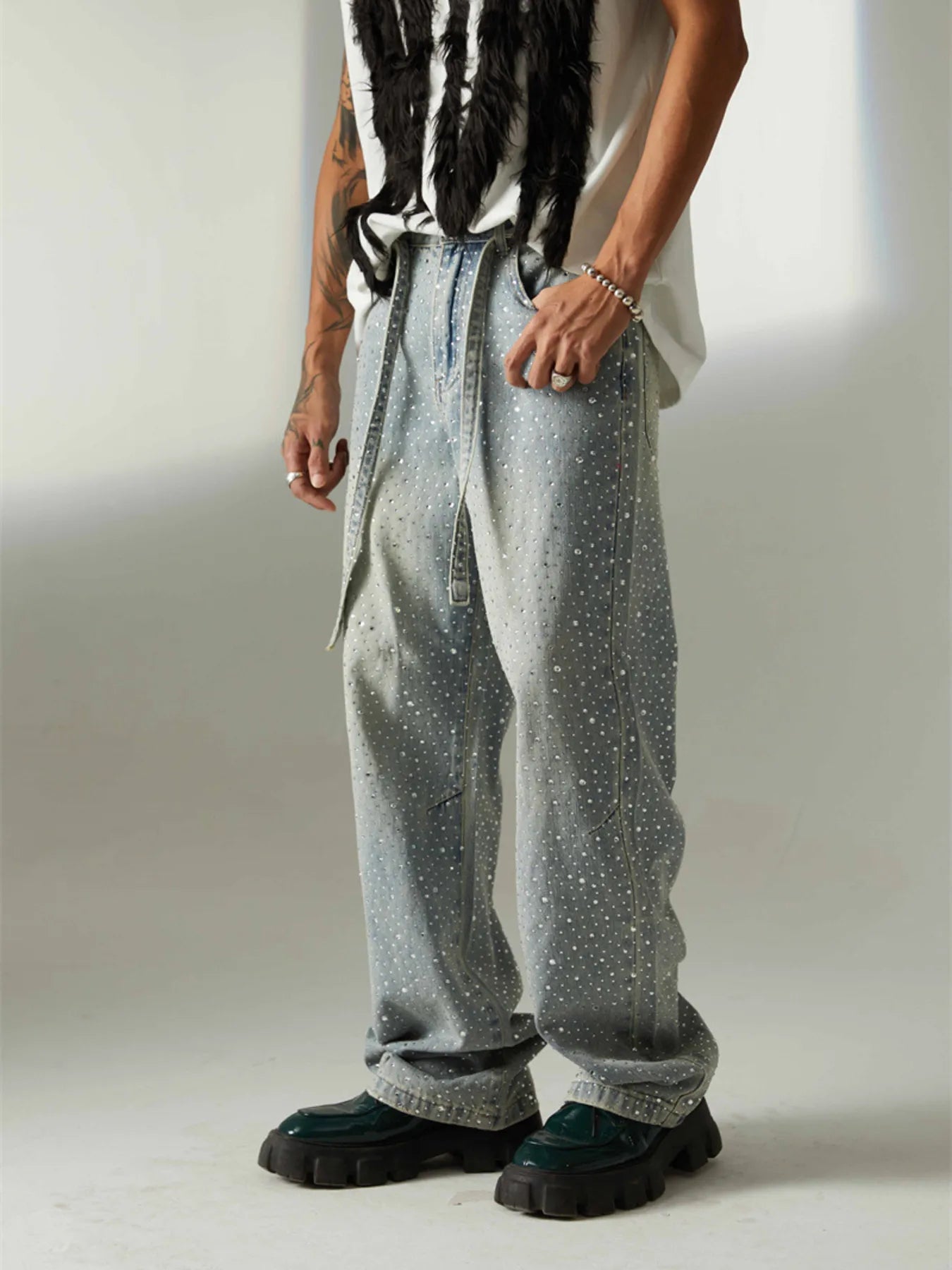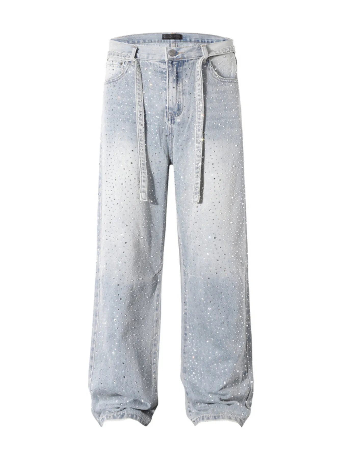 Step into the spotlight with our Rhinestone Embellished Wide Leg Jeans. Β Meticulously designed to blend high-fashion glamour with everyday wearability, these jeans feature stunning crystal rhinestone details on a flattering wide-leg silhouette. Crafted from premium stretch denim, they offer unparalleled comfort for a night out, a special event, or whenever you want to elevate your look effortlessly.