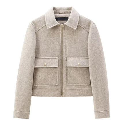 Women's Winter Zipper Jacket - Elegant Short Street Coat with Pockets