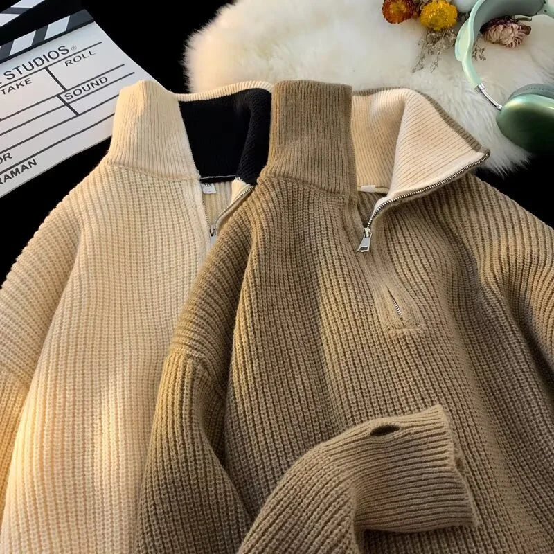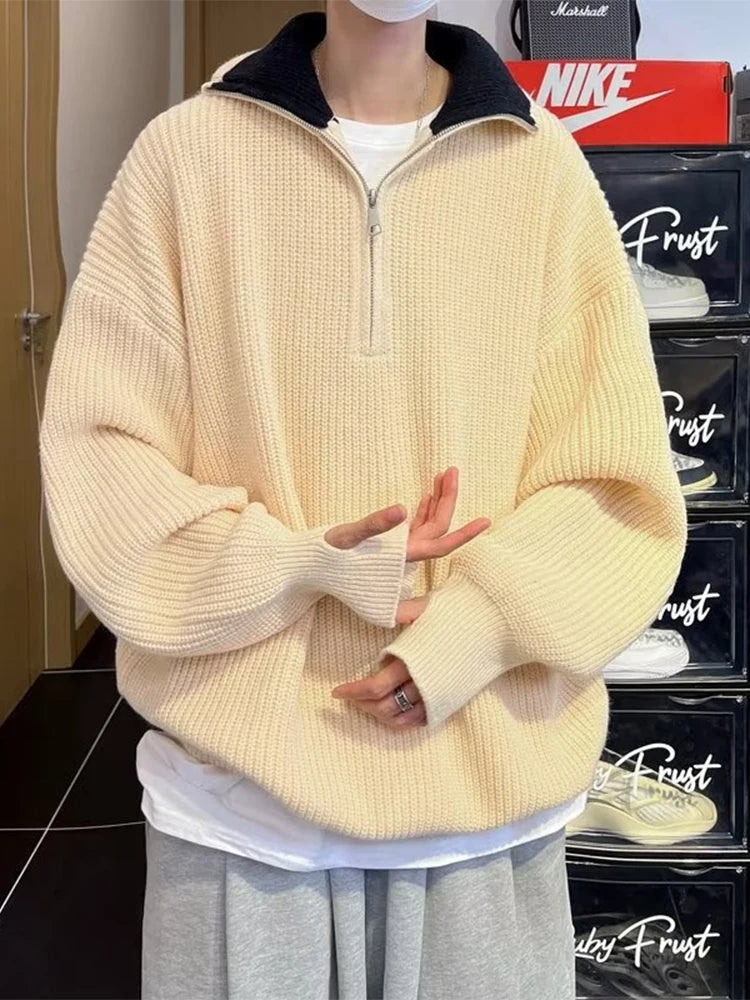 Step into autumn cool with this half-zip sweater boasting Y2K vintage style meets streetwear ease. The stand-up collar adds flair and extra warmth, while the loose knit and relaxed cut make it perfect for layering or wearing solo. Solid or contrast panels (depending on variant) keep the look clean yet eye-catching. Ideal for casual days, evening strolls, or simply lounging—but with style that works anywhere.