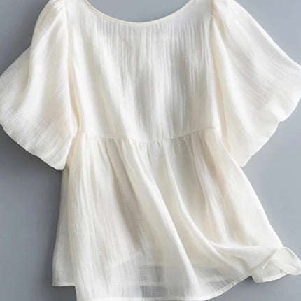 Designed with a structured square neckline and airy puff sleeves, this blouse brings a flattering silhouette to your summer wardrobe. The lace patchwork detail adds a touch of elegance while keeping the look relaxed and wearable for any casual or smart-casual occasion.